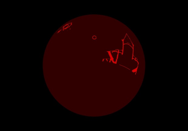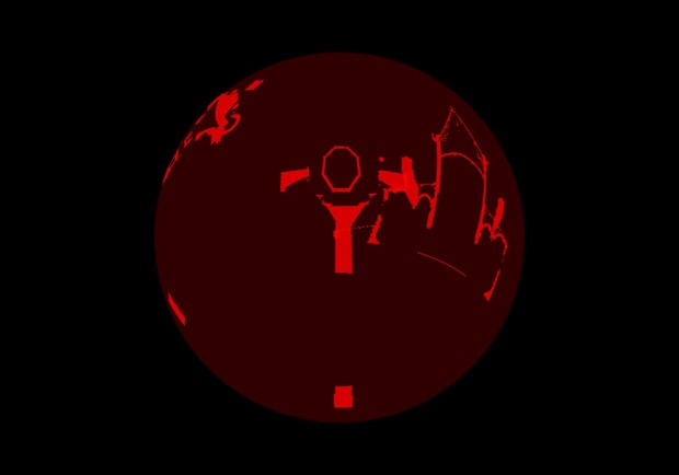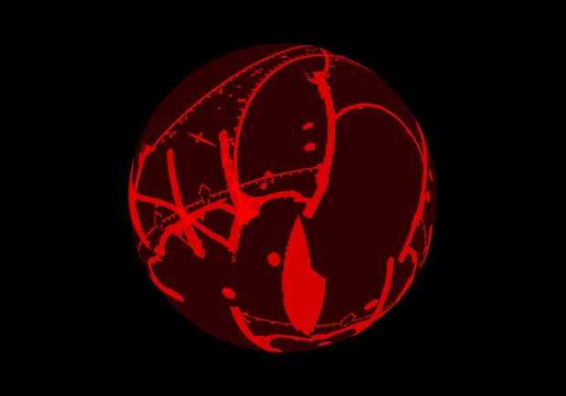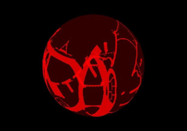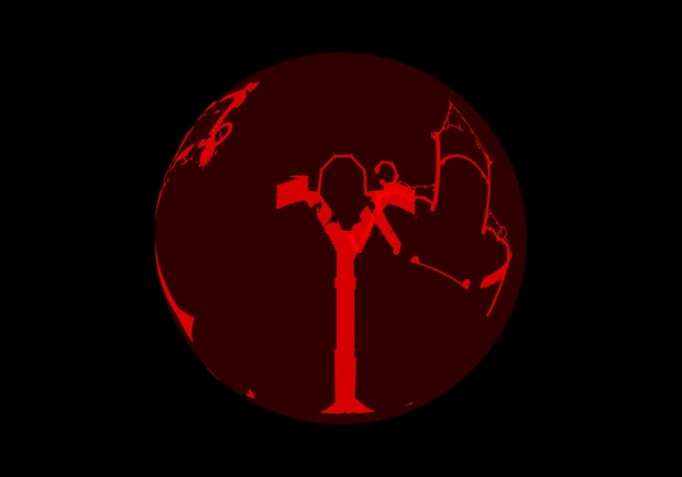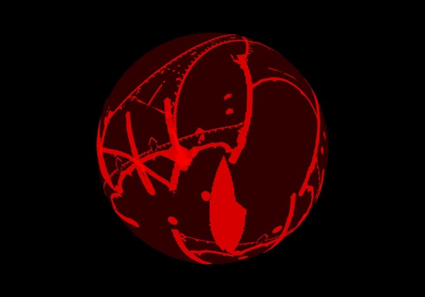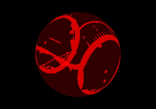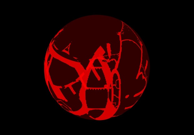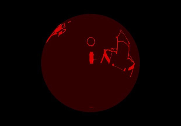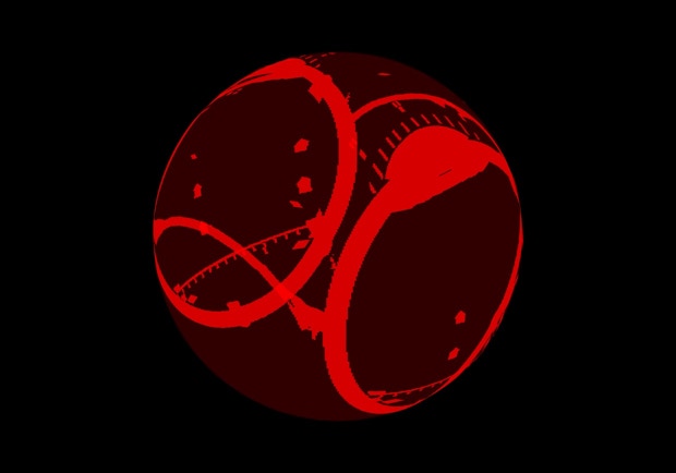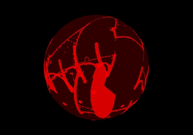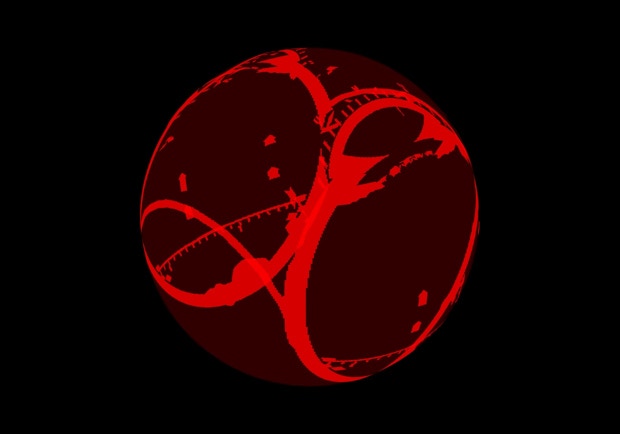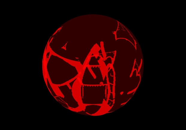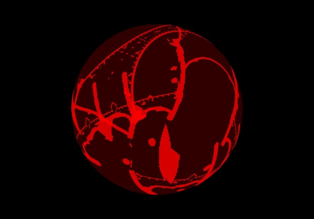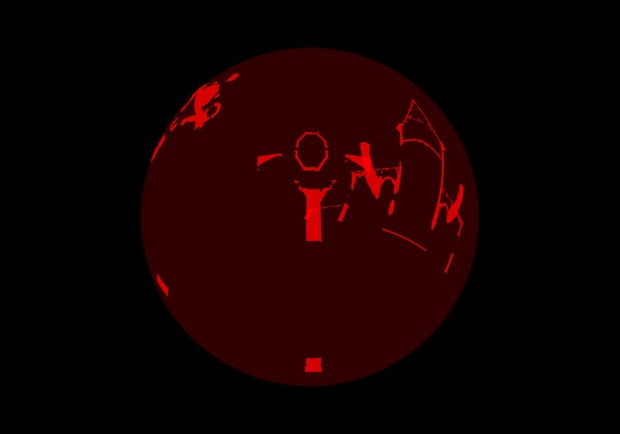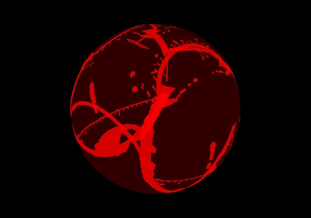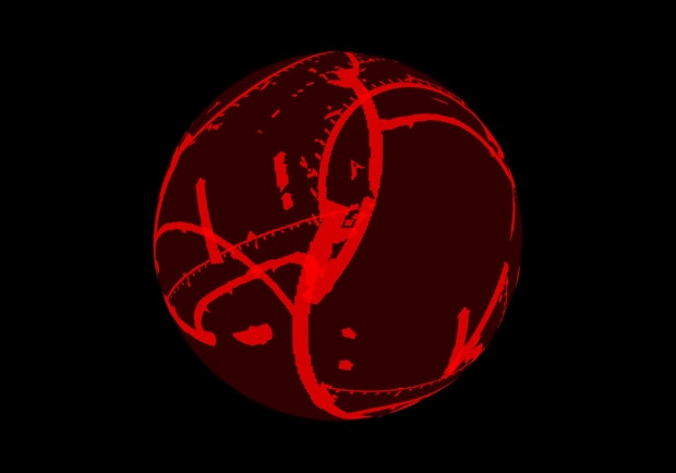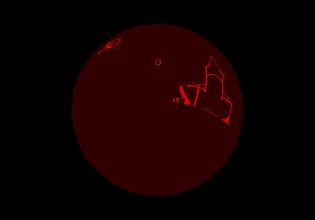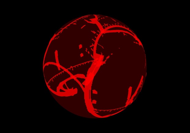 Motifs d’intersection apparaissant sur une sphère croissant progressivement depuis le centre géométrique de la cathédrale, jusqu’à englober complètement cette dernière. Le rayon des sphères est normalisé (toutes les sphères paraissent de taille identique) de façon à mieux voir l’évolution des motifs d’intersection à mesure qu’augmente le rayon de la sphère.