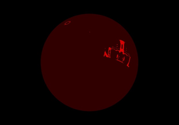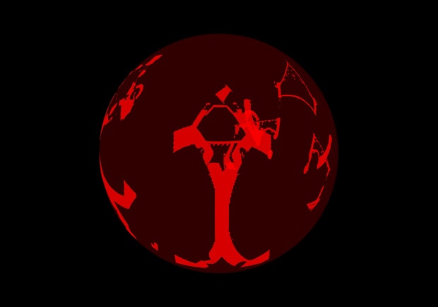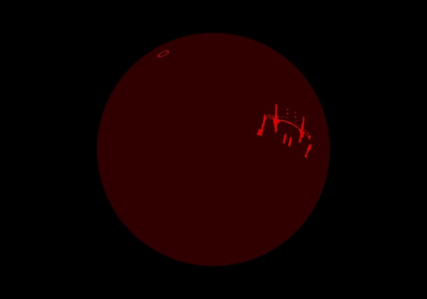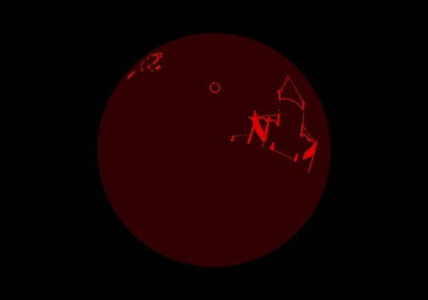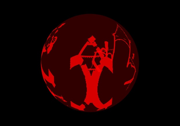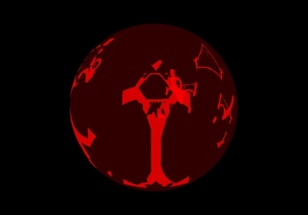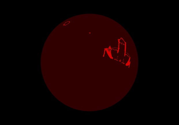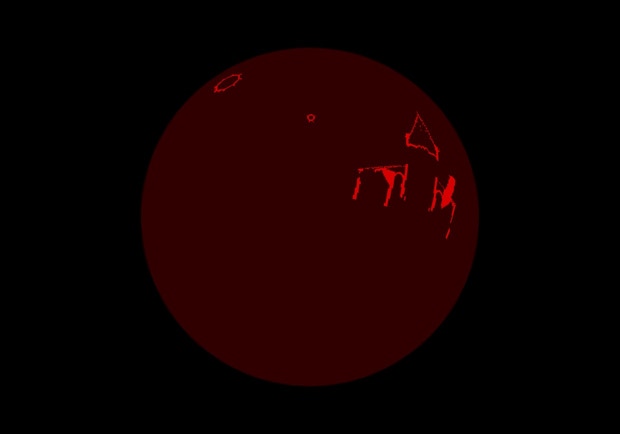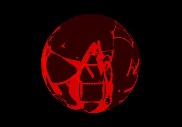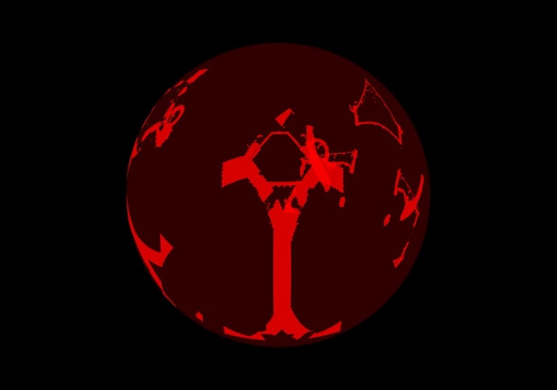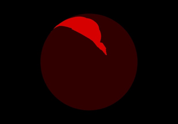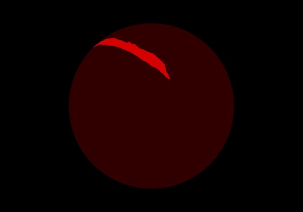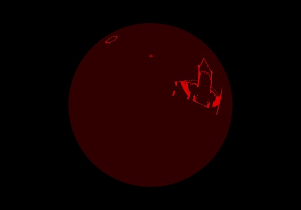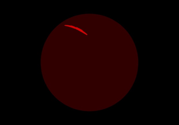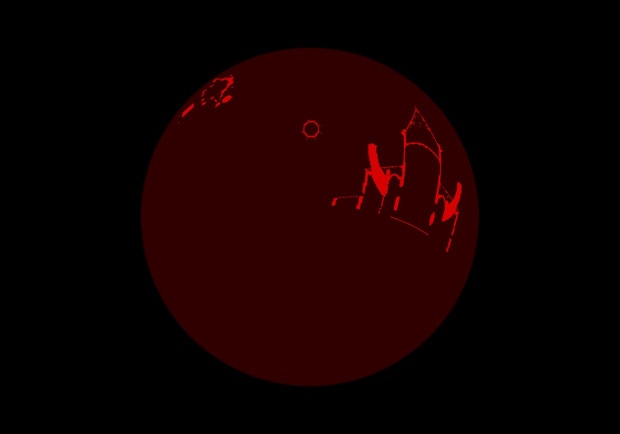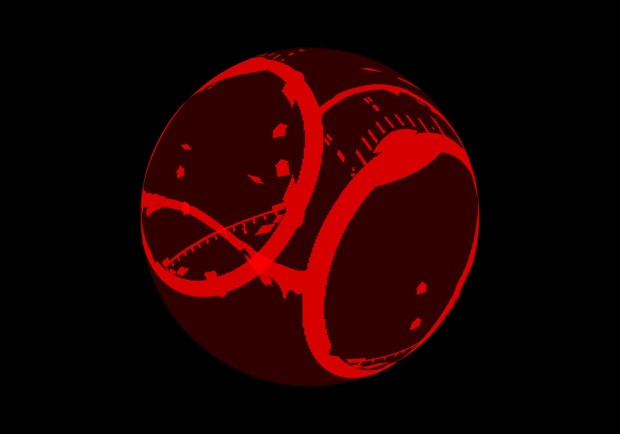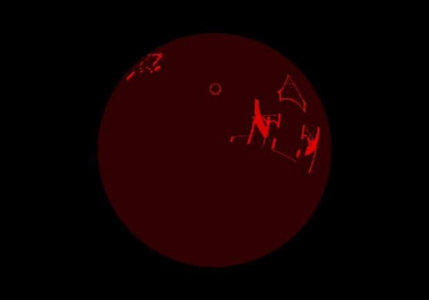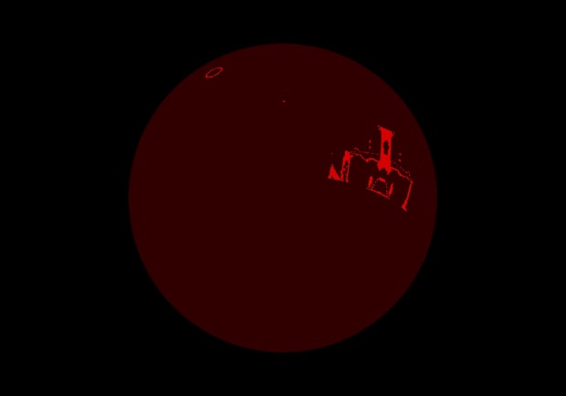 Motifs d’intersection apparaissant sur une sphère croissant progressivement depuis le centre géométrique de la cathédrale, jusqu’à englober complètement cette dernière. Le rayon des sphères est normalisé (toutes les sphères paraissent de taille identique) de façon à mieux voir l’évolution des motifs d’intersection à mesure qu’augmente le rayon de la sphère.